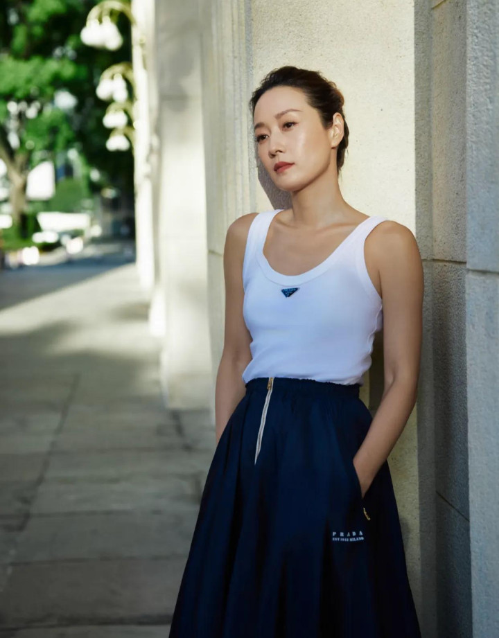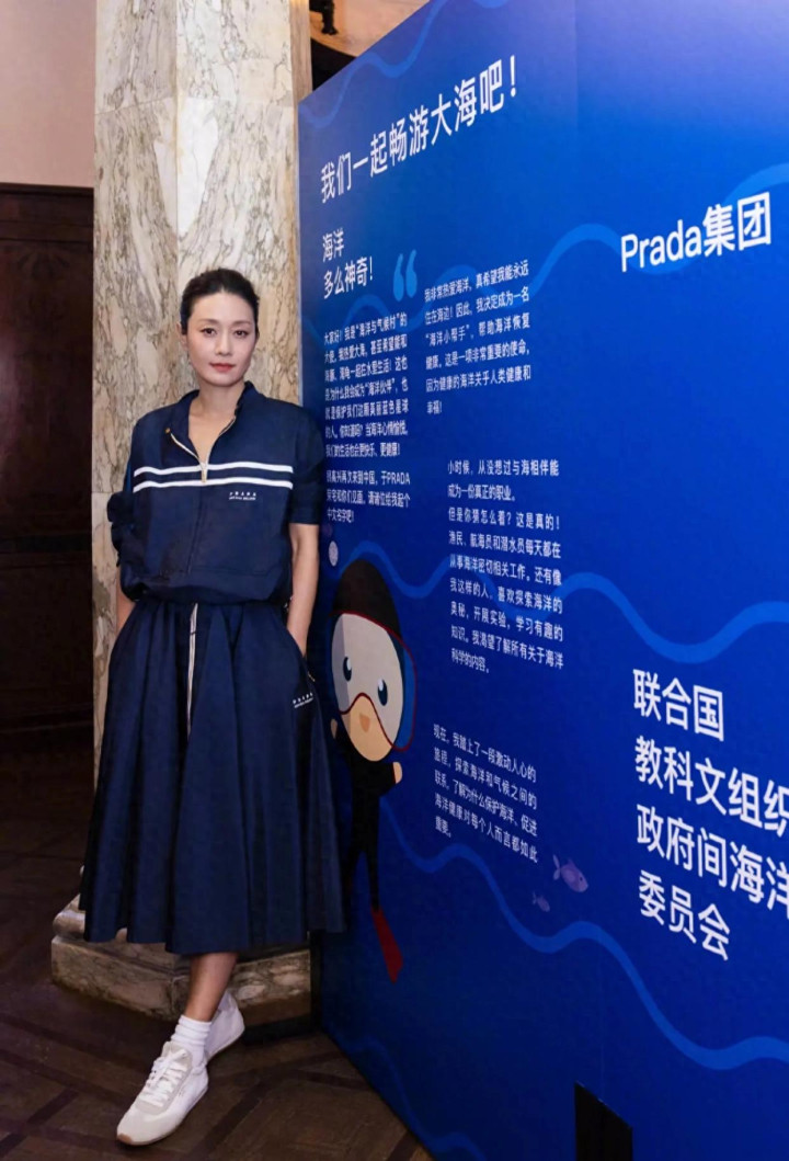 近日,马伊琍身着Prada运动装出席“SEA BEYOND:PRADA荣宅看见海洋”活动开幕,这次她终于选对发型了
