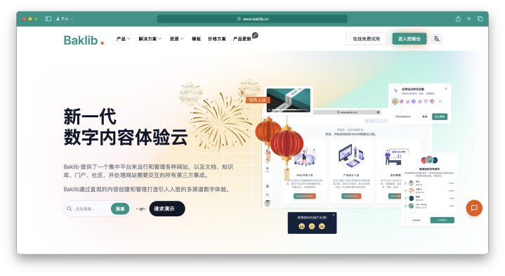 Baklib 支持各类网站搭建,同时也支持强度定制和独立部署。而且在国内属于第一梯队的既能满足国产信创,又能实现 SaaS化平台运营的全栈式企业内容管理平台。
